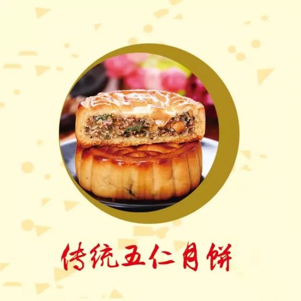 五仁月餅是中國傳統(tǒng)糕點之一,在中秋節(jié)各式月餅中最為著名?;葚S五仁月餅配料考究、皮薄餡多、味美可口。月餅花紋和字跡清晰,形狀端正,有多種新鮮果仁香味。